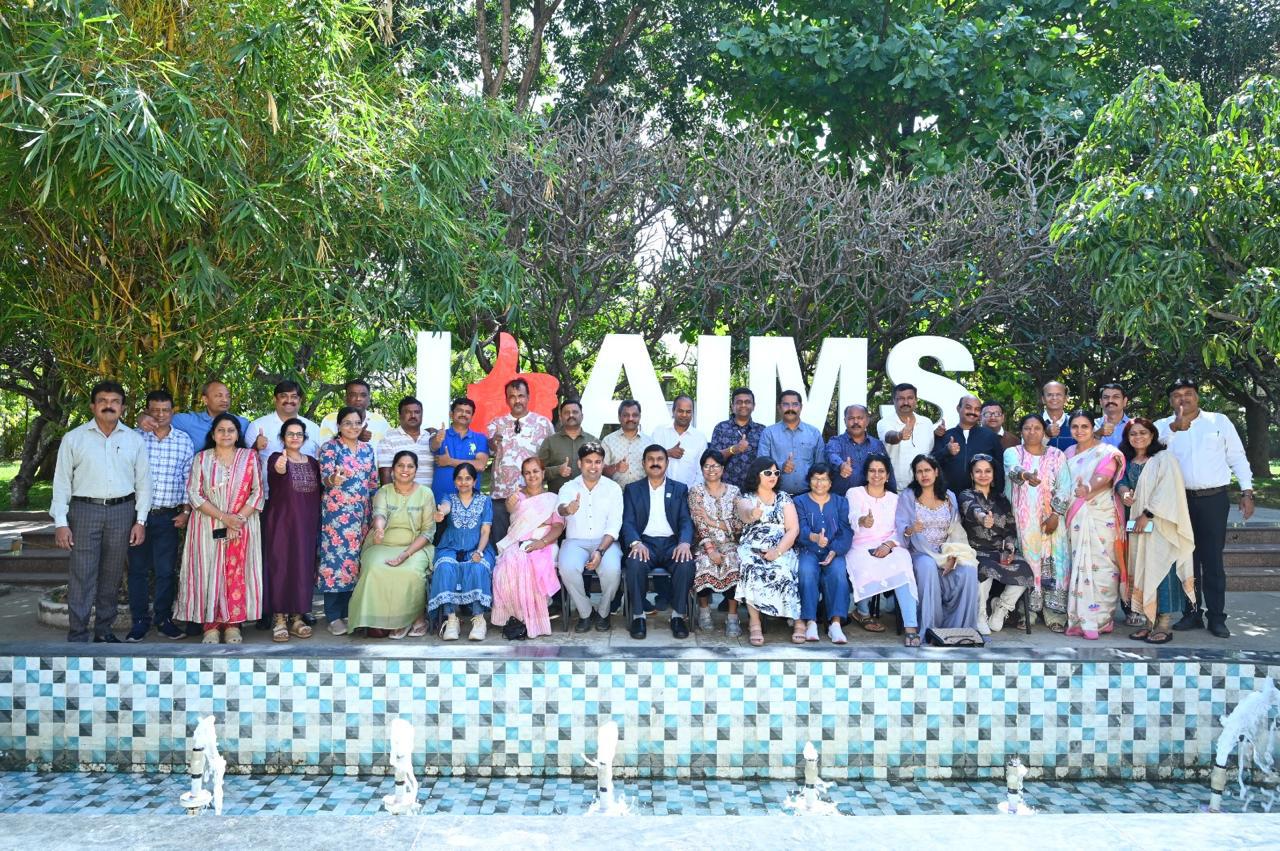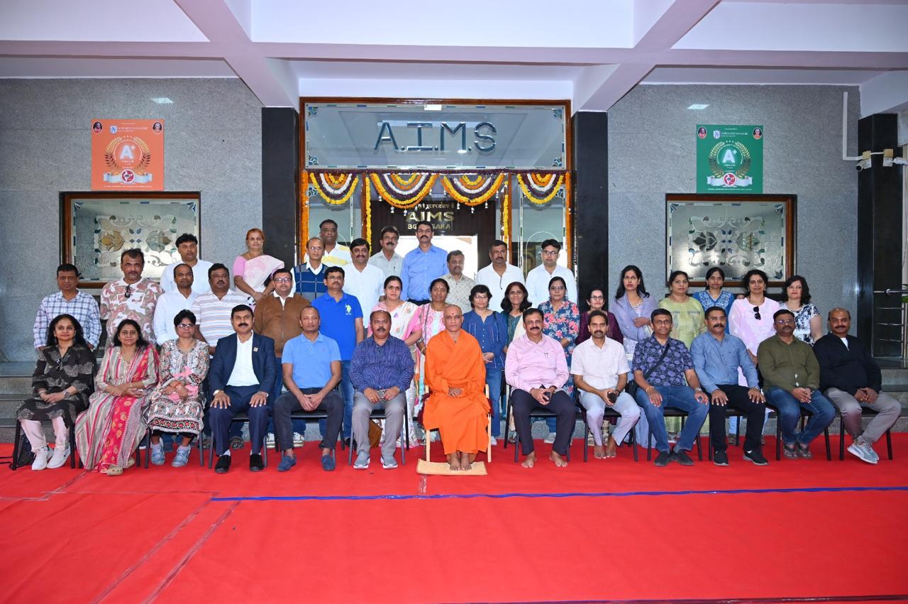 The welcome address was delivered by Dr. M. G. Shivaramu, Principal, AIMS. The Chief Guest was Dr. B. R. Ravikanthe Gowda, IGP, Davanagere East Zone. The event was further graced by Sri Sri Satkeerthinatha Swamiji, Nagamangala Math, Dr. Ravi K. S., Vice Principal, AIMS, Mr. B. K. Umesh, Registrar, AIMS, and Mr. Dharmendra Y. H., PRO Manager, AIMS.