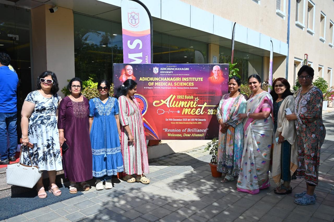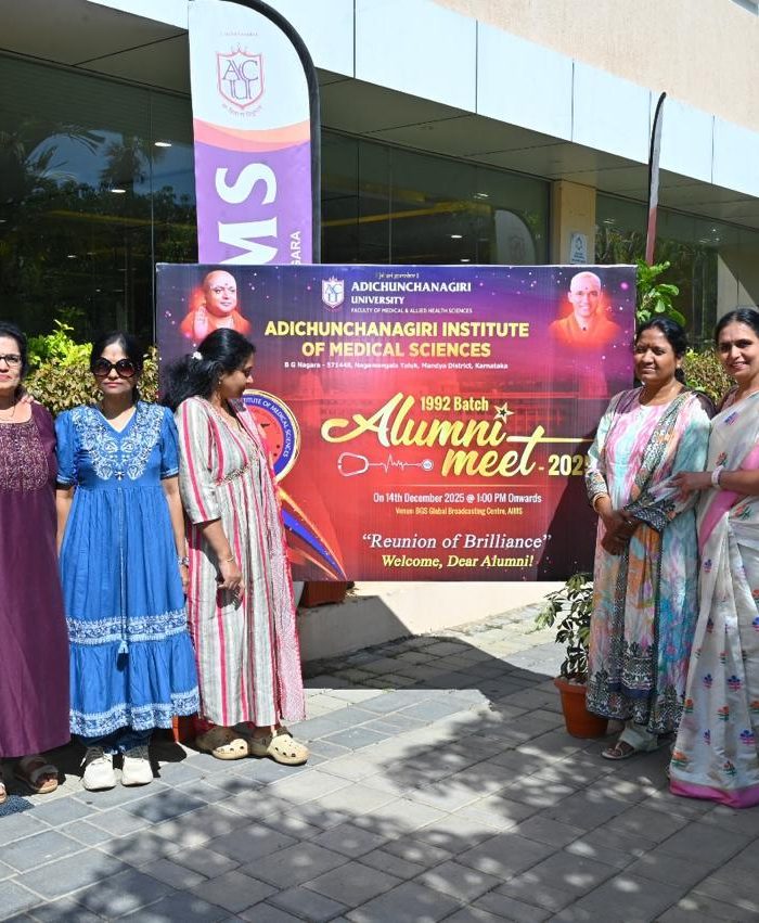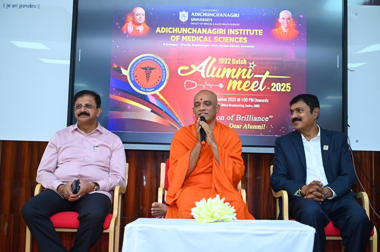With immense pride and gratitude, Adichunchanagiri University – Faculty of Medical & Allied Health Sciences, in association with Adichunchanagiri Institute of Medical Sciences (AIMS), successfully hosted the 1992 Batch Alumni Meet – 2025 on 14th December 2025 at the BGS Global Broadcasting Centre, AIMS.
