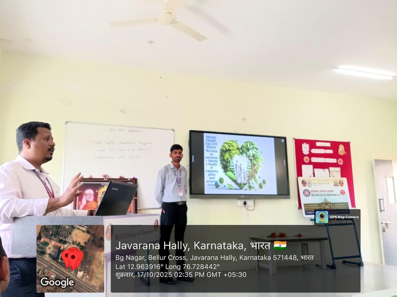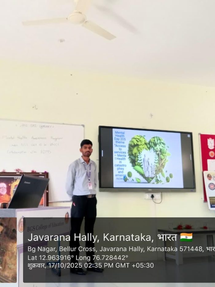 BGS College of Education, Under NSS Unit-10, organised Mental Health Awareness Program for 1st Year B.Ed Teacher Trainees on the occasion of World Mental Health Day October-2025.