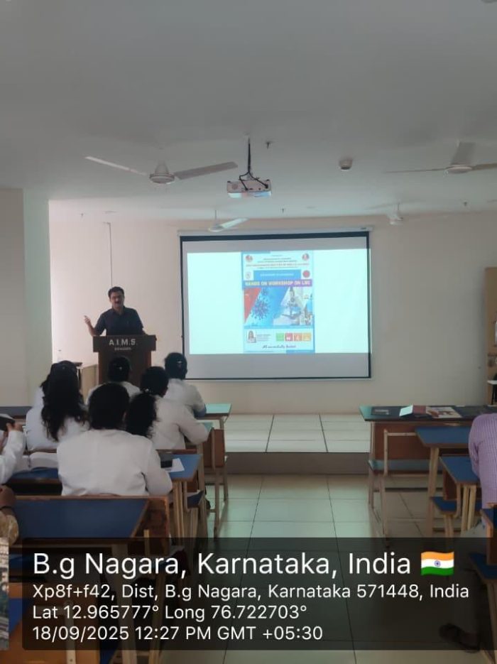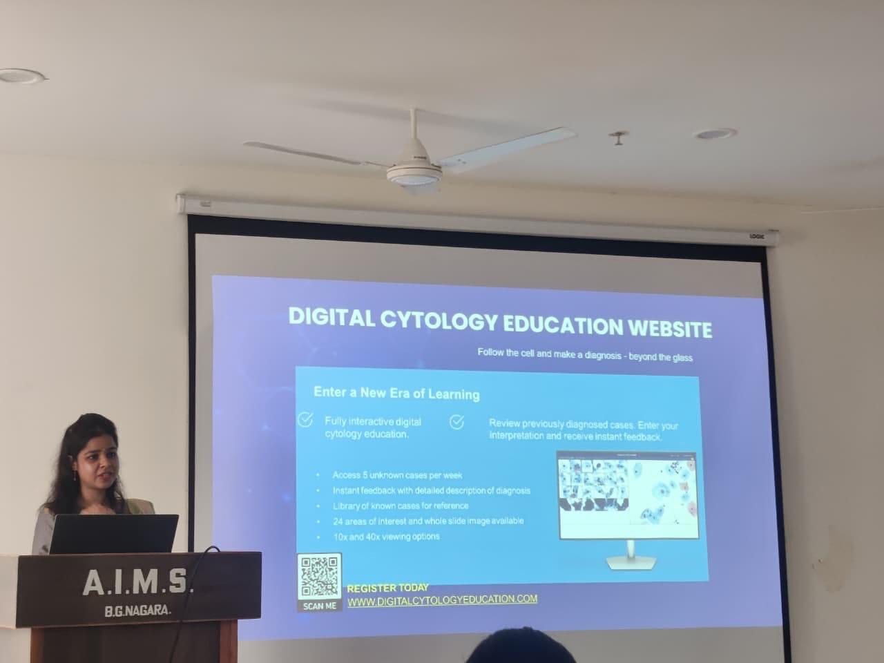 The Department of Pathology, AIMS, successfully conducted a Hands-on Workshop on Liquid Based Cytology (LBC) on 18th September 2025 in collaboration with Hemogenomics. The session was led by Dr. Shweta Singh, Consultant, Hemogenomics, who delivered an insightful talk on the principles, workflow, and advantages of LBC compared to the conventional Pap smear technique.