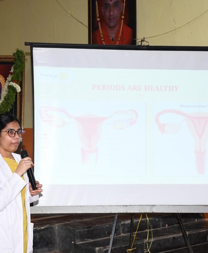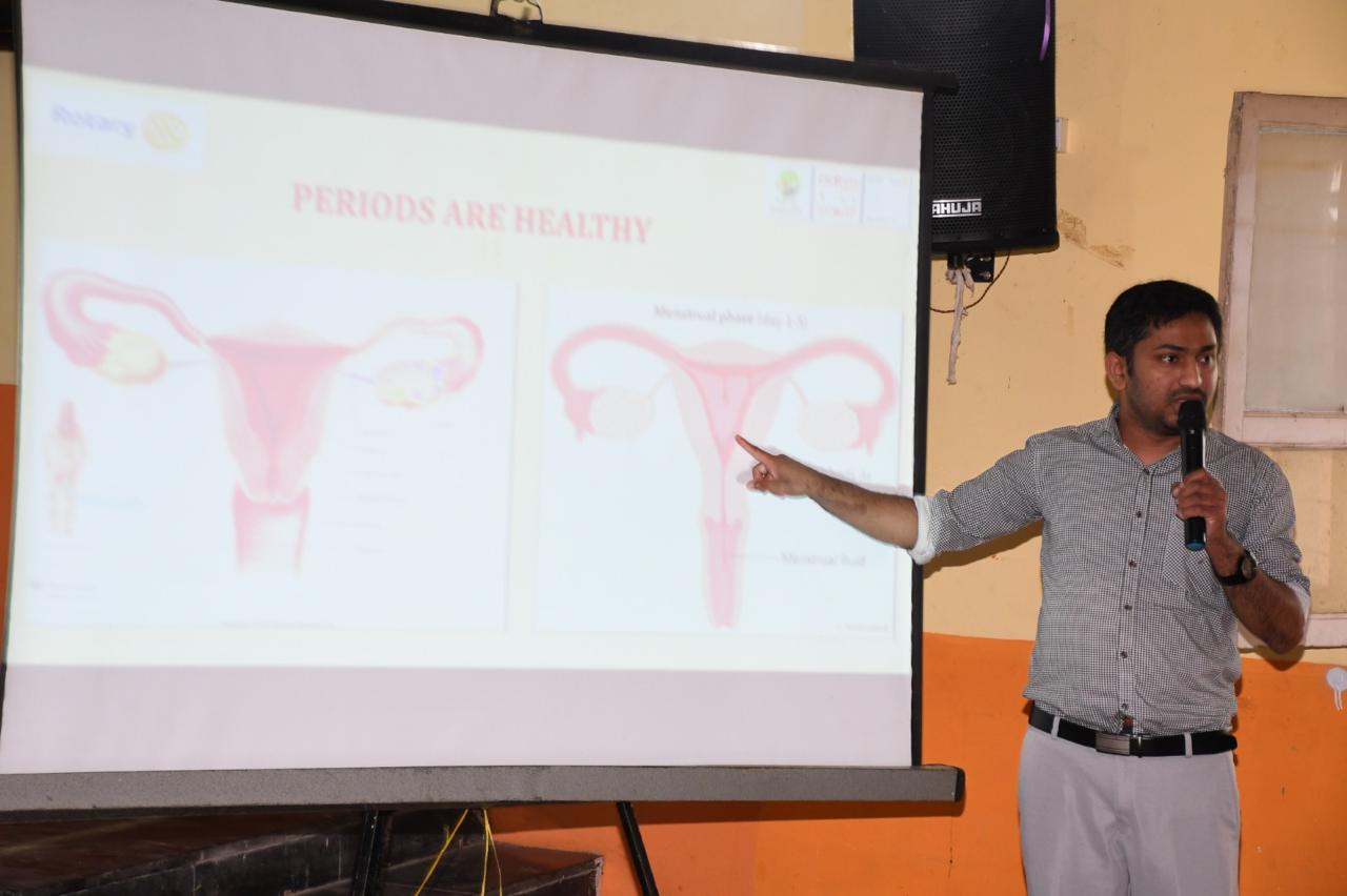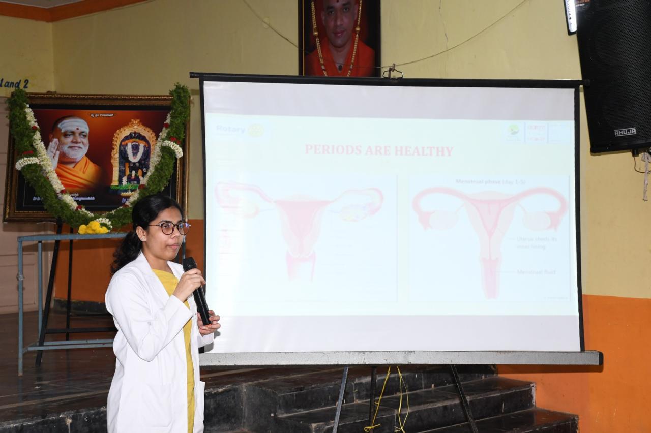 Dr. Sunil C V, Assistant Professor, and Dr. Sushmitha, Dr.Bharathi Postgraduate, Dept. of OBG, delivered a session on Menstrual Hygiene.