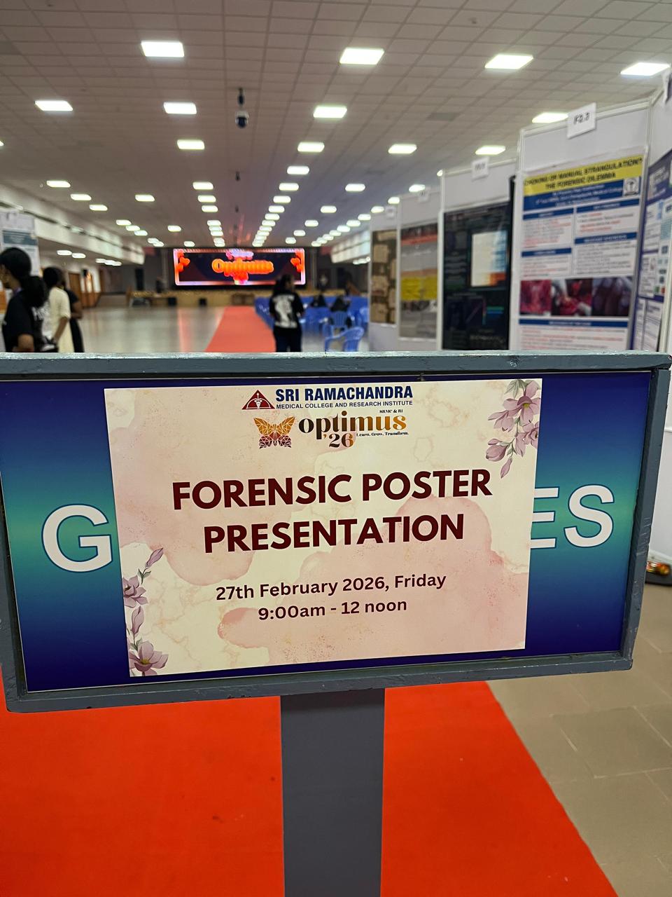 Hearty congratulations to Phase II MBBS (3rd Term, 2024 Batch) students Mr. Nihar Dharmaraja Shadli and Mr. Yashas N Hegde for their academic participation at OPTIMUS 2026 – Forensic Medicine Poster Competition held at Sri Ramachandra Medical College, Chennai (26-28 February 2026).