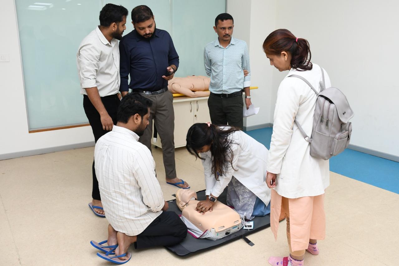 **Day 2** focused on hands-on skill training, including high-quality CPR, AED usage, airway management, emergency drug administration, and ACLS simulations for cardiac emergencies and stroke. Pre- and post-tests assessed learning outcomes.
