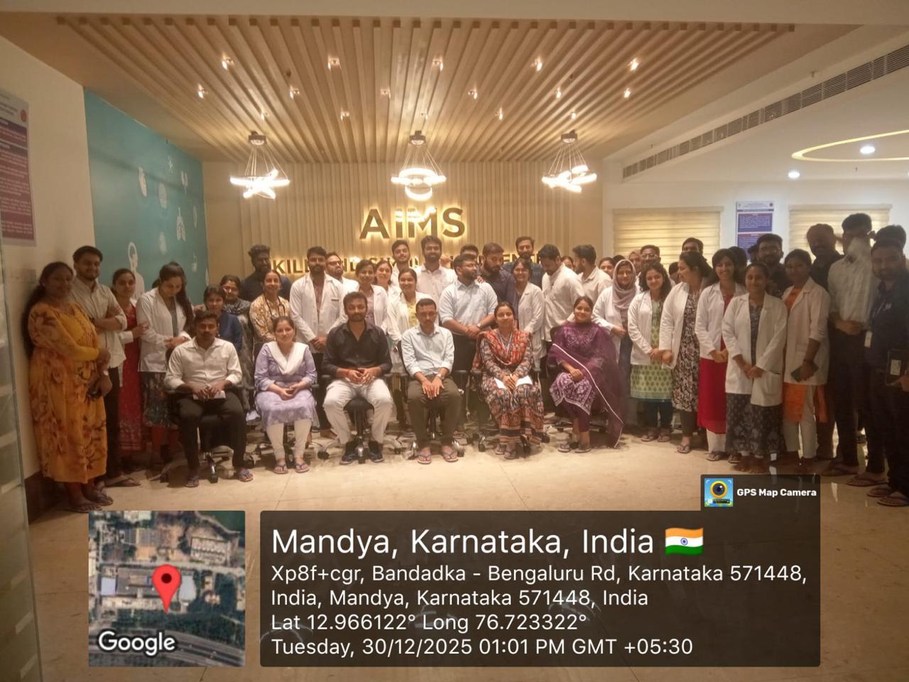 The Departments of Anaesthesiology and Critical Care Medicine, in collaboration with the Skill and Simulation Centre, Adichunchanagiri Institute of Medical Sciences (AIMS), organized a two-day Advanced Cardiovascular Life Support (ACLS) and Basic Life Support (BLS) Workshop for postgraduate students on 29th and 30th December 2025 at the AIMS GBC and Skill & Simulation Centre. The workshop aimed at enhancing theoretical knowledge and practical skills in emergency resuscitation through structured lectures, interactive discussions, and simulation-based training.