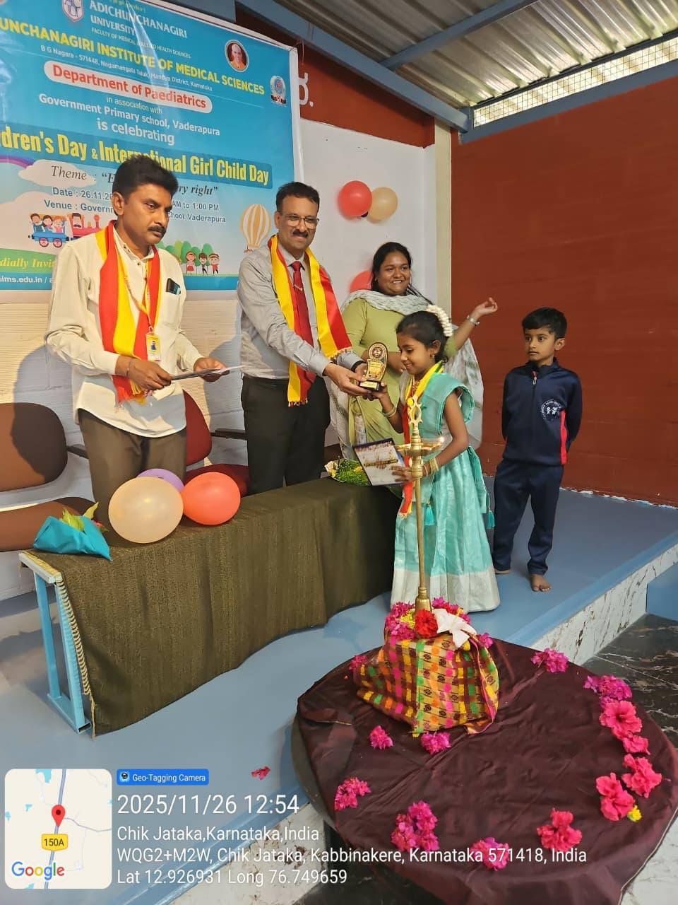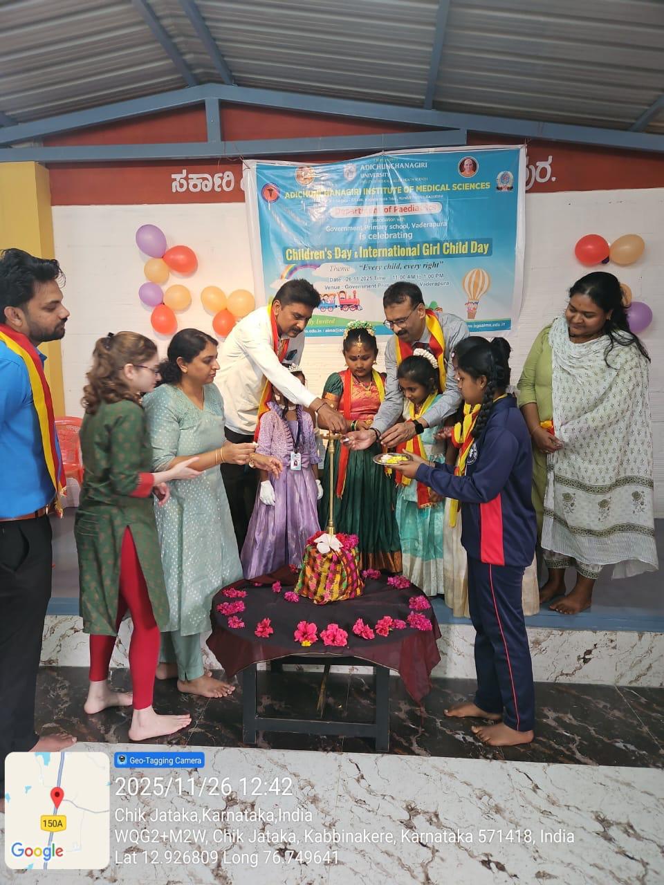 The Department of Pediatrics, AIMS, celebrated Children’s Day and International Girl Child Day on 25th November 2025 at Government Primary School, Vaderapura, with the theme “Every Child, Every Right.”