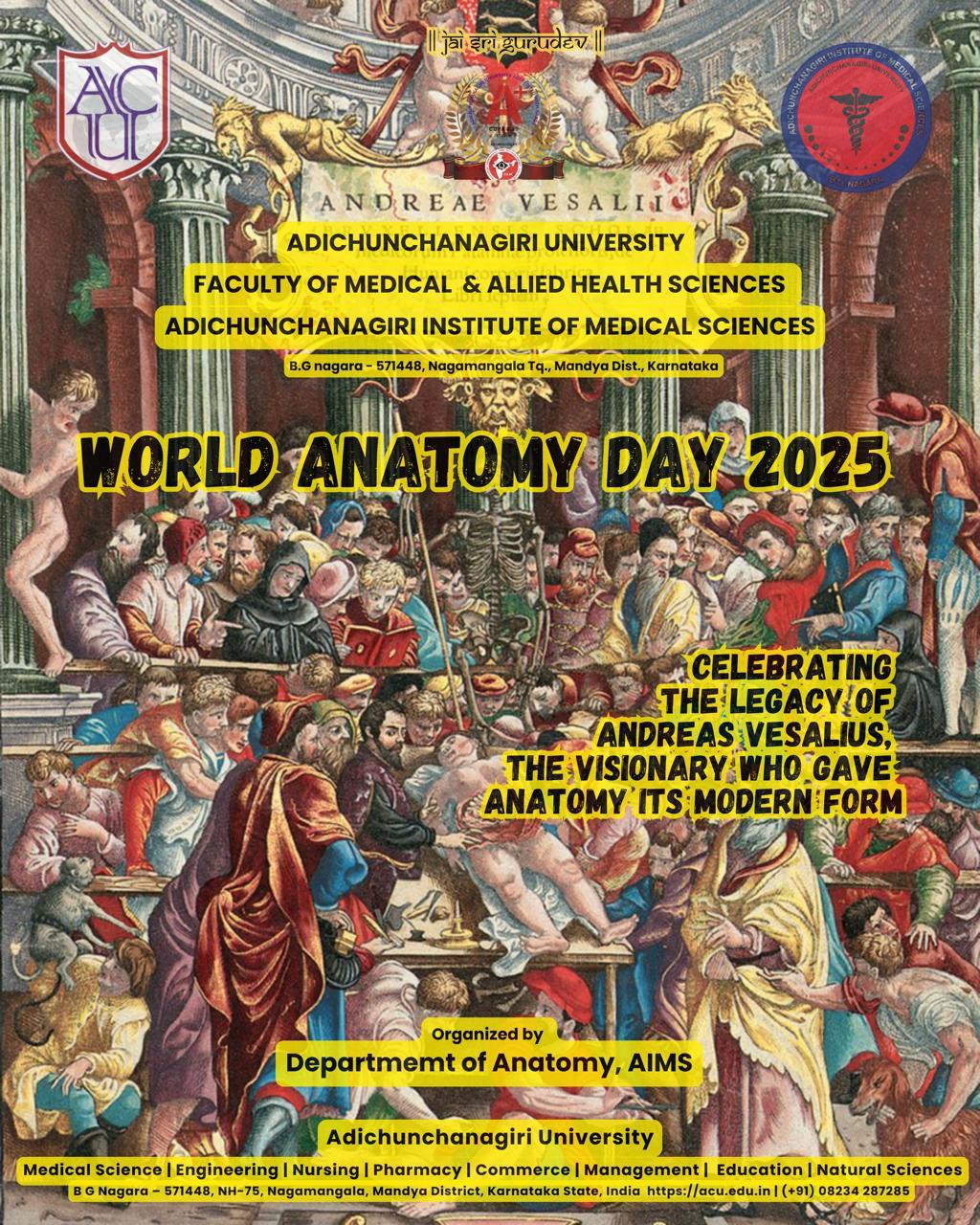 World Anatomy Day 2025 was celebrated with enthusiasm at Adichunchanagiri Institute of Medical Sciences (AIMS), honoring the legacy of Andreas Vesalius, the pioneer who transformed the study of human anatomy. The Department of Anatomy organized a series of creative and interactive competitions to engage students and highlight the importance of anatomy in medical science.