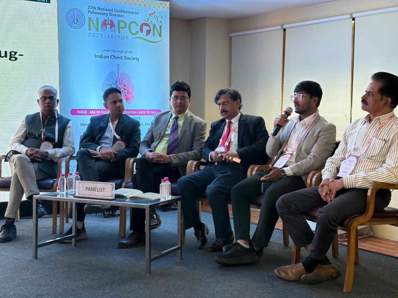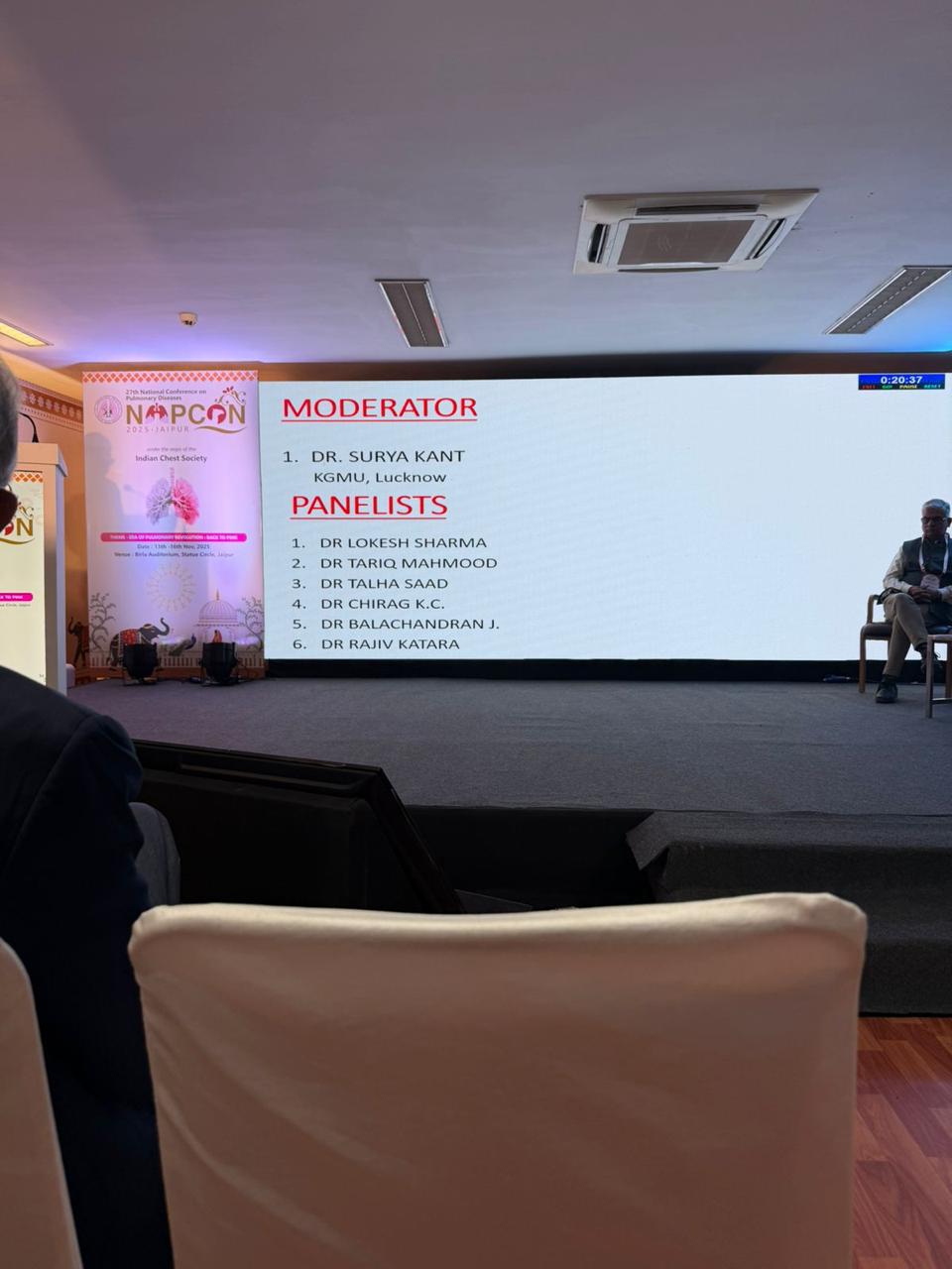 As a panelist, Dr. Chirag K C contributed to the expert discussion on *“Tuberculosis & Comorbidities: Clinical Impact”* conducted on 1 *6th November 2025, from 09:45 AM to 10:15 AM, at Dr. K J R Murthy Memorial Hall as part of a National Faculty Panel Discussion.* The session was moderated by Dr. Surya Kant Tripathi and featured eminent pulmonologists from leading institutions across the country. The discussion highlighted evidence-based strategies for managing tuberculosis in patients with chronic comorbidities such as diabetes, liver disease, CKD, COPD, and immunosuppression.